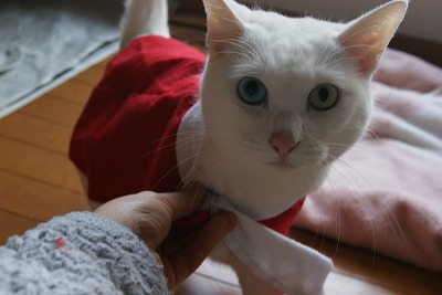 今日はクリスマスですねちょうど寒波が来ていて、こちらのエリアでは雪こそ降らないけど、空気がキンキンに冷えてます昼間でも寒かったです。それでもまだ雪が降らないだけマシなようで。冬に雪が降る日本海側や北海道や山間部では、強い風を伴って吹雪になるところもあり、ホワイトクリスマスなんて洒落てる場合じゃないようです。雪が生活の害になりませんように。それでも今日はクリスマス日本人は仏様だけでなく、洋の東西を問わず神様もOKなお国柄。ということで、我が家でもクリスマスを楽しみました100均ショップでペット用のクリスマスグッズがあったので、みんなの可愛い写真が撮れたらいいなと思い買ってみました。しかし・・・みんな嫌がりましたリリーちゃんも激しく嫌がり、抑えて撮るのがやっとでした。お兄ちゃん(小太郎、康太郎)たちは、もっと嫌がって逃げてしまいました。仕方が無いので、グッズをおもちゃにして遊んで撮りました。結局クリスマスの記念写真は、この方たちにお願いしました。この姿で、我が家のメンバーで撮りたかったな~。クリスマスなので少しだけケーキを食べました。ケーキの写真を撮るのを忘れたので、残ったお飾りだけで。他サイトでのゲームですが、これが出来上がりました。o<(*゚ー゚)ノ∞+:;;;;:+∞ Merry Christmas ∞+:;;;;:+∞ヽ(゚ー゚*)>o皆が互いに皆の幸せを祈る、聖なる夜でありますように。