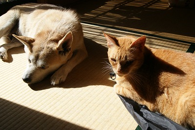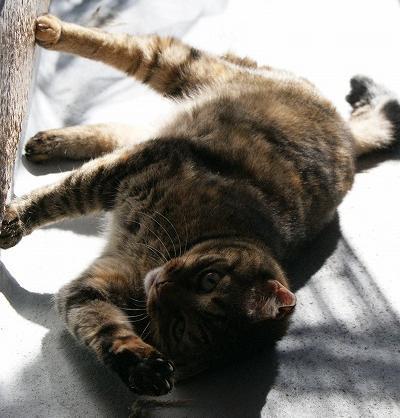 もう12月の半ばになりました。2012年もあと半月で過ぎ去ってしまうのですね。今年を振り返って印象に深いことといえば、9月に諸事情で実家の3にゃんずを預かっていたことでしょうか。可愛いメンバーが3匹増えて幸せだったことが思い出・・・だったらよかったのですが、そうではありません。我が家のメンバーが日々静かに仲良く暮らしていたところに、突然やってきた気の強いオバサンが3匹。「ここはボクたちのおうちにゃのに・・・」オバサンたちの態度のデカさに、世間知らずで弱虫でお人よしのはずの我が家のメンバーも、だんだん不満が募ります。そしてその日から約1ヶ月間、“毎日っ” ケンカやってましたま、そうでしょう。人間のように話し合いなんてできなくて、本能のままに体力勝負の動物さんですからね。実家の次女のミー姉さん。(推定11歳)健康で、ホントに猫か?と思うほど、賢いニャンです。この家にもいちばん早く馴染んで、そよ風が吹く日はベランダでゴロニャンするのが楽しみでした。ミー姉さんがゴロニャンしているところへ、我が家の末っ子リリーちゃんがやってきました。リリーちゃん ; 「オバサンたち、いっつもフーフー怒っているから、たまにはアタチが 仕返ししてやるわ。 ふふっ。。ミーさん、隙ありっ!」ミー姉さん : 「ちょっと、何すんのよ!この小娘が。 アタシはここで寝てただけなのに。」リリーちゃん : 「きゃあー、ミー姉さん、ゴメンナサイ!! アタチが悪うございました」リリーちゃん : 「ふう。。ミーさん、あっちに行ったわね。 あー、恐かった。 やっぱオバサンたちは強いなー。」チビ子嬢 : 「いつまでここで暮らすのか知らないけど、アナタたちも大変ねえ。」ミー姉さん : 「ここのおうちは居心地はいいんだけど、若者がちょっとウルサイわね。」賢いミー姉さんは、犬のチビ子嬢ともうまくやってくれていました。
