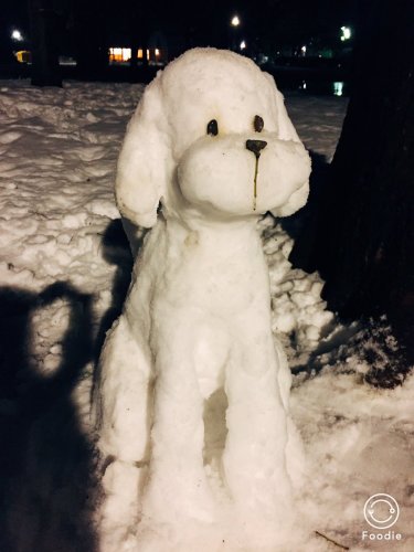 強烈な寒波が居座っている影響で、昨日から今日にかけ、こちら濃尾平野でも雪が降りました。22日の東京ほど積雪はなかったけど、雪の影響で高速道路は一部区間が通行止めのままになってます。ホント、22日は雪の影響で首都圏で電車の運行がガタガタになり、あちこちの駅のホームや改札で電車に乗れない乗客があふれかえりました。ふだんは流れるように大勢の人が動く大都市だから、ちょっとでも詰まるともう大変の一言ですね。それでも先日のJR信越線が雪で立ち往生したときのツイートの影響でしょうか。「今、駅員さんが頑張って整備しているから、電車が動かなくても怒らないで」といったツイートに賛同する人がたくさんいて、こういうときでも持てる人の優しさにちょっとホッといたしました。また積雪が珍しい太平洋側では、このときとばかりに雪の風景や雪遊びを楽しみました。ネットに投稿された画像を見ると、雪が降る中の夜の東京駅はヨーロッパのどこかの国に来たかのような風景になりました。東京の各所で雪だるまが次々にできました。雪合戦を楽しむ大人(若者)もいました。(雪にはウンザリの雪国の方には呆れる話でしょうが、その分こちらは夏には熱帯夜に耐えていますので、どうかご容赦を。)ツイッターの #雪だるま には、積雪でテンションがし、創作意欲をかきたてられた人々の力作がいろいろUPされてます。思わず感心してしまう作品ばかりなのです。(たまに作った人の精神状態が心配になるものもあり)また #雪だるま には入ってないけど、見た瞬間に優しいキモチになった作品も見つけました。※ココ様より掲載許可をいただきました ⇒ ⇒ コチラマッカチンって『ユーリ!!! on ICE 』というアニメのキャラクターだったのですね。フィギュアスケートを題材にしたアニメだから、もしレンタルでDVDがあったら一度見てみようかな。UPした画像は、今日の我が家のマロン君です。マロン君、雪は初体験です。お庭がいつもの地面と違う、白くて冷たいものになってます。白くて冷たくてふわふわしてるこれって何だろう?・・って思いつつ雪の下に何か隠れているような気がして、雪にダイブです。「えみりーさん、この下には何もないでしゅね。」。マロン君、そのうち気分がハイになってきて、庭を走りだしました。お鼻に雪をつけて嬉しそうに走り回ってます。可愛いね~。