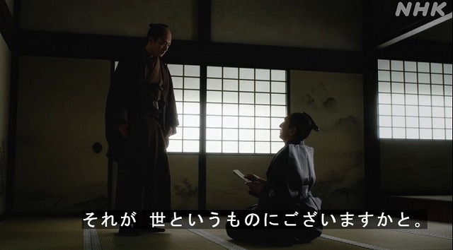 2025年NHK大河ドラマ 『べらぼう〜蔦重栄華乃夢噺〜』 の感想です。この回で感じたのは、上に立つ者の行動の対比でした。松平定信(井上祐貴さん)は怒りに任せて恋川春町(本名は倉橋格;岡山天音さん)を呼び出して詰問しようと考えます。でも最高権力者の怒りが想像できるから春町はすぐには応じられません。春町の殿・松平信義(林家正蔵さん)は春町を理解し、誇りに思う家臣の一人として、春町を生かすためになんとか守ろうとします。駿河屋市右衛門(高橋克実さん)も春町を逃がそうと、バレたら厳しいお咎めを受けるのを承知で蔦屋重三郎(横浜流星さん)の頼みをきいて、偽の人別を作ってやりました。人生経験と人間性がある信義や市右衛門は、春町を助けてやろうと知恵を巡らせ、定信に嘘の報告をしたり偽の人別を作ったりと自分がやってやれる行動しました。若さと、人生経験が少なくて自分の考えが何でも通ると思う定信は、怒りの勢いで春町の処罰しようとし、でもそれが結果として死を招いたと知って、定信は若さゆえ激しく動揺して後で涙しました。ただ春町が死を選んだのは、我が殿・信義のためかなとも思いました。自分の才能を認めてくれた、自分を誇りに思ってくれた、ギリギリまで自分を守ろうとしてくれた殿です。その殿を守るためにも、思い残すことなく自害を選んだのではと感じました。こちらでは様々な意見がでていて参考になります。 ⇒ ⇒ #大河べらぼう #べらぼう 寛政元年(1789)2月、蔦屋重三郎が出した本は世間で大人気となり、飛ぶように売れていましたが、その内容は老中首座の松平定信(井上祐貴さん)の治世を皮肉るものでした。一方、定信のほうは文武に長けた者を登用しようとしても次々と辞退していき、どうしたものかと悩んでいました。そんな折に側用人の本多忠籌(矢島健一さん)の家老が賄を受け取っていると知り、定信は激怒して厳しく叱責しました。ただ忠籌は、今はお役目をもらうと持ち出しが増えるから大したうまみがない、登用したい者が辞退するのはそのためと定信に進言しました。それでも定信は公儀への奉公に対する理想を掲げて耳を貸そうとせず、忠籌は世のことを知って欲しいとばかりに重三郎が出した本を定信に差し出しました。忠籌が差し出した本を読んだ定信は、自分の政が笑いのネタになっているのを見て、これはもはや謀反!と激怒、早速役人を蔦屋重三郎(横浜流星さん)の店に向かわせ、朋誠堂喜三二(本名は平沢常富;尾美としのりさん)が書いた『鸚鵡返文武二道』他3作の絶版を命じました。定信は喜三二の主家である秋田藩の佐竹義和を呼び出して詰問、激しい怒りで涙する我が殿を見て喜三二はもう筆を折ることにしました。恋川春町(本名は倉橋格;岡山天音さん)の主の松平信義も定信に呼び出しを受けたのですが、信義はとりあえず春町が病気で隠居したとごまかしました。そんな話をしていたら平秩東作が病だと報が入りました。重三郎は須原屋市兵衛(里見浩太朗さん)と大田南畝(桐谷健太さん)と共に東作を見舞いました。東作の病は重く、平賀源内が枕元に来たという話をする東作はもう長くないと誰もが感じました。源内は世界がどんどん進むのを肌で感じ、自身もまた新しい世を作り出そうとしていた男で、田沼意次も同じ考えでした。でも松平定信の政で日の本が100年前に逆戻りし、ますます世界から取り残されていく様が悔しくて源内が化けて出てきたのだと市兵衛は思いました。そんな頃、蝦夷地では松前藩の圧政に対してアイヌ人が蜂起し、松前道廣がすぐに鎮圧はしたものの蝦夷の民の恨みは深いと報告がありました。ならばと松平定信はこの機会に蝦夷地を天領としては、と徳川御三家の当主らに進言しました。紀州藩の徳川治貞(高橋英樹さん)は定信に味方してくれましたが、尾張藩の徳川宗睦(榎木孝明さん)は、松前藩は反乱を鎮圧して功を立てたから天領にして所領を取りあげるのはどうかと反対でした。定信はそれでも自説を強く主張しましたが、一橋治済(生田斗真さん)から、その考えは定信が嫌う田沼と同じ、民もそう思っている、と指摘されそれ以上何も言えなくなりました。『悦贔屓蝦夷押領』を読んだ定信は、それが自分の政への痛烈な皮肉であることに気がつき、倉橋格(=恋川春町)の呼出を命じました。呼出に応じて釈明しても下手をすれば自分はお手討ちで主家の小島松平家が取り潰しとなるのでどうしたらと春町が悩んでいたら、いっそ別人になればと重三郎は言いました。それもありかと思った春町は主君の松平信義(林家正蔵さん)に相談、支度が整うまで信義には定信に頭を下げてくれるよう頼みました。信義は、1万石の小名の当家にとって恋川春町は唯一の自慢であり、当主の自分にとっても密かな誇りだった、春町の筆が生き延びるならいくらでも頭を下げると言ってくれました。我が殿の自分への愛情に春町は胸が熱くなりました。しかし時間稼ぎの信義の嘘は定信には通用せず