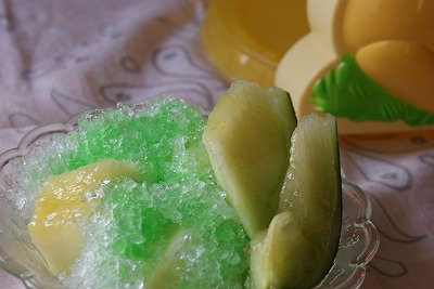 ほてった身体にエアコンの冷気とカキ氷の冷たさが、最高に