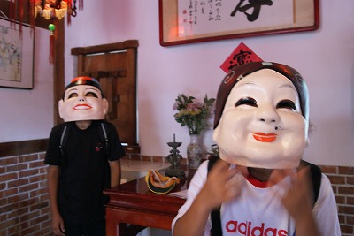 福を呼ぶと言うかぶりものがあったので、見知らぬ小学生たちにお願いして、