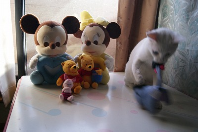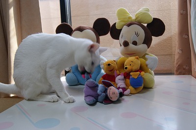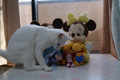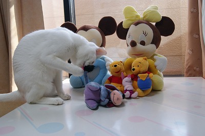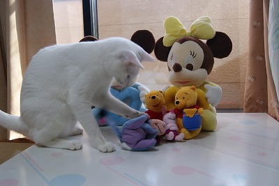 イーヨーをブン回して猫パンチして、もてあそんでます。
