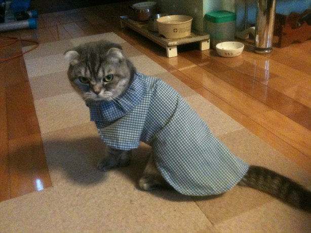 でも、今日は午後から雨です。リンにもレインコートを着せてみました。外には出ないけどね。