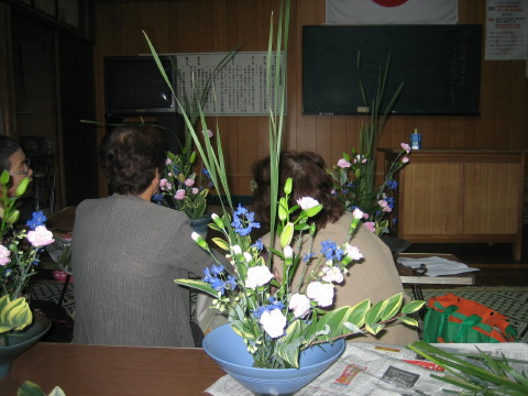毎日暑いです今年は節電も加わり、熱中症になる方が続出とか、扇風機がバカ売れだとか・・。我が家では昔から扇風機は必需品。扇風機が大小合わせて7台と、サーキュレーター2台、フル活用中エアコンは外気に合わせてこまめに調整。もちろん各部屋に温湿度計設置。今日は暑いけど、風が強いので窓開けまっくって、扇風機併用で、なるべく動かない(笑)ここでやっと本題。家を建ててから、地域の催し物に出来るだけ参加するようになりました。何事もなければおそらくずっとこの土地で商売をして、生活していく・・。当然だと思われる事ですが、引っ越しばかりしてきたこれまでの生活の中で、そんな事は全く思いもしなかった事です。この辺りは”○○区○○分区”と、15~20世帯づつに分けてあり、交代で分区長を決め、回覧板を回したり、市の会報を配ったり、清掃やお葬式の手伝いなどをします。去年、22年度はうちが分区長でした。お陰で、沢山の方と知り合いになれました。今年はさらに、ボランティアに参加したり、日帰り旅行にも行ってみたり。そして、月に一回公民館で行われる、生け花教室へ通い始めました。いつも独学なので、ちゃんと習い事をするのは始めてかも。同年代はいないのですが、雑談しながらのんびりと花を生ける月に一度の楽しみになりました。第一号作品まあ、最初なのでほとんど先生が生けたようなものですが只今、フラワーベースを捜索中