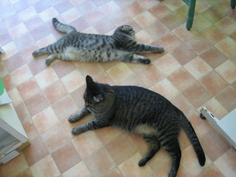 寒い日は、コタツに入りっぱなしで静かですが、暖かいと、店の入り口とかでゴロゴロ日向ぼっこしたり、2匹で走り回ったり、そんな我が家の猫たち。邪魔だってばワイド画面なのに23インチなのにお店の正面の窓では・・・りんちゃん、変なところから頭でてるよ挟まってるんじゃないんです。落ちつくのかな~今は、段ボールの空き箱でドタバタしてます