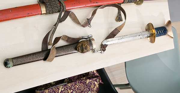 二刀流ということで、太刀(長剣)と短剣の二刀流を二つ持って構えている写真は残っていました