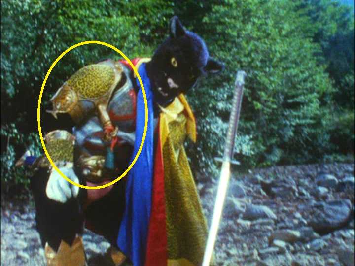 黒影豹馬の長着の両袖が、ブラックジャガーの両腕の肩当て鎧に変身したと解釈としよう