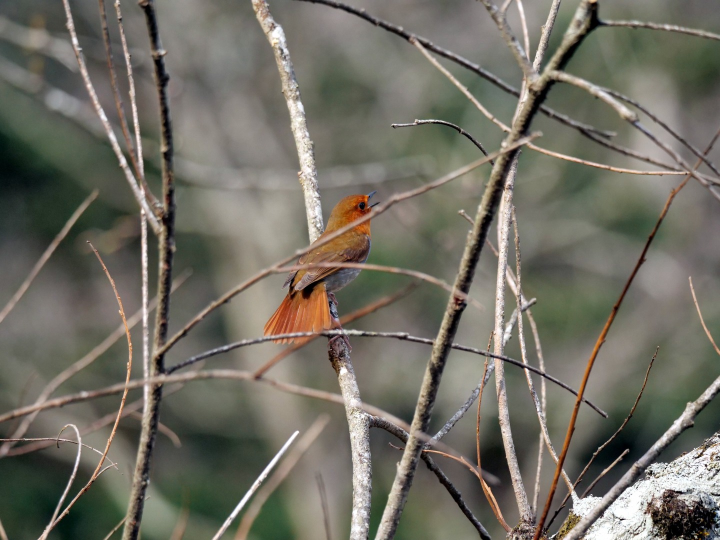 最後は、スッキリ撮れたけど、後ろ向きの「コマドリ」です。