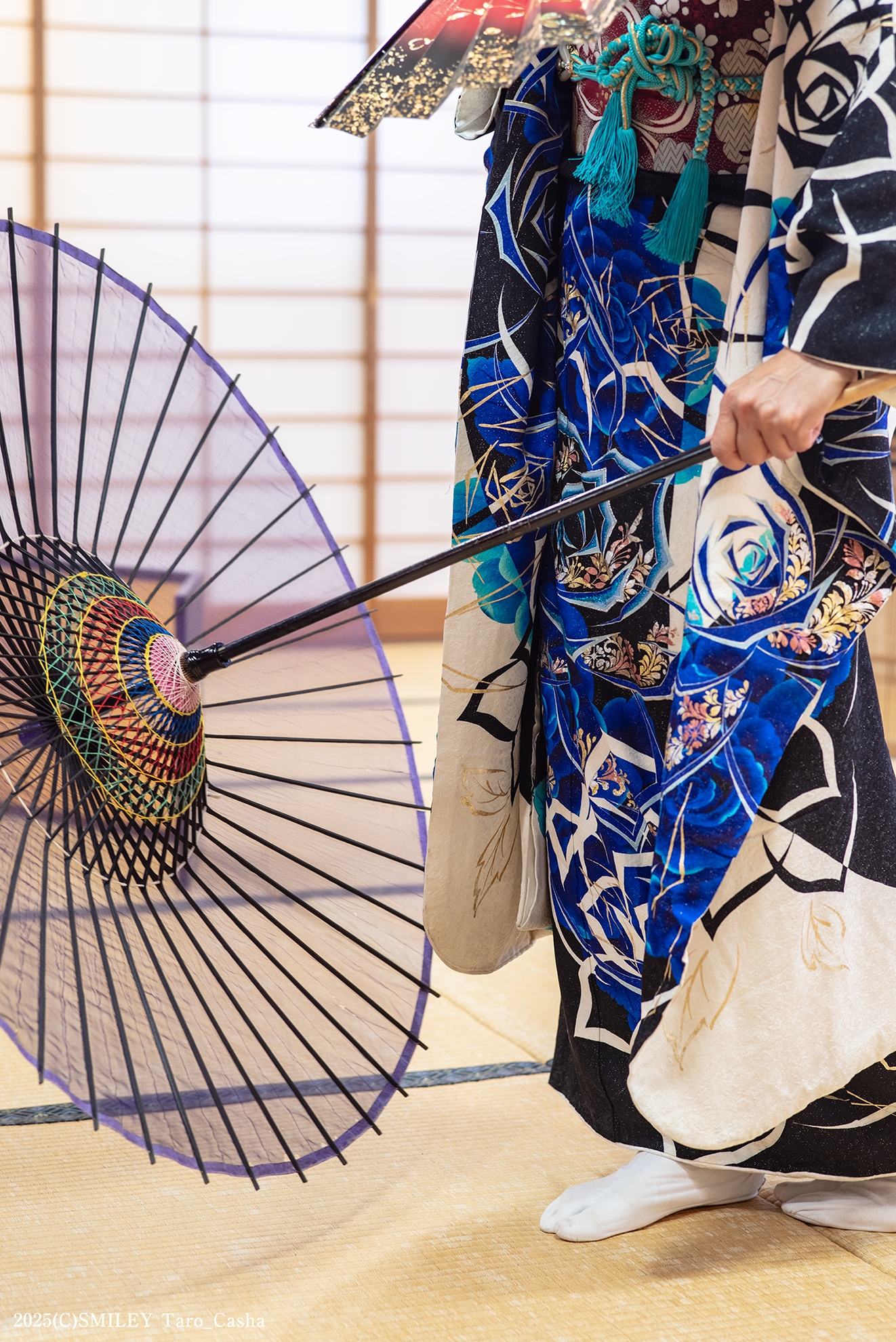 ↑モデルの錦照会(きんしょうかい) 三代目家元の錦生裕照さんの足元も。