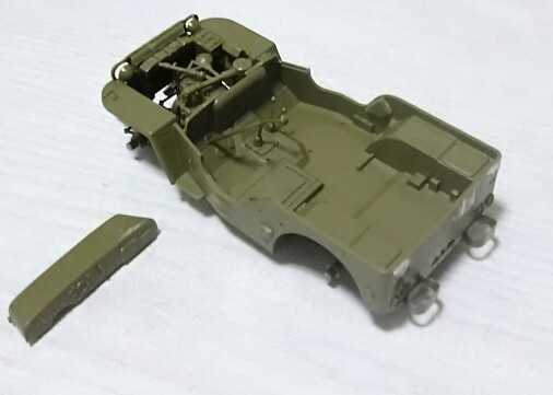 後部のパネルの予備タイヤや燃料缶の取付基部は削って、穴はパテで埋めておきました。