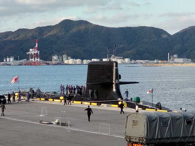 潜水艦は、たいげい型かそうりゅう型だと思いますが、真っ黒で艦名は不明でした。