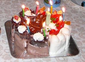 来週の4月6日はツインズ兄ちゃんの8歳の誕生日。かわいそうに春休みというタイミングに生まれたために友達に気づかれないうちに誕生日は過ぎ去ってしまうツインズ。恨むなら手術日を決めた病院の担当のお医者さんを恨んでおくれ。昨日はプレゼントを買いに行った。今日はお友達家族とフレッシュテニスを楽しんだ後にケーキの予約をしにいった。お店では予約できるケーキの写真がたくさんアルバムに貼ってあって好きなものを選べる。ここで困ったことが発生。赤が大好きな乙女チックユー兄はイチゴのムースケーキを希望。チョコが好きなショー兄はフルーツがたくさんのったチョコレートケーキを希望。二つ買うことはできない。するとどちらかが譲らなければならない。ユー兄が泣きそうな顔になりながら「ボク、ゆずりあいする・・・」とすごく不服そうに言った。譲ってあげるのはエライことなんだけど、せっかくの誕生日に自分の好きなケーキを食べられなくて泣きそうだなんてちょっと可哀相だ。ちなみに去年はどうしたかというと・・・・。 必殺!ショートケーキでホールケーキ!去年は確か予約をせずにケーキ屋に行くとちょうど入学式の時期で注文が多いのか当日は受けられないといわれ、そのままショートケーキを8つも買って、見た目をホールケーキにしてろうそくを挿したのだった。なのでチョコレートケーキ半分とショートケーキ半分で二人とも特に問題も起こらなかった。もともと切り分けられているので親は楽だったのだけど、これではやはり誕生日ケーキとしての見た目がちょっと・・・・というのが難点。それ以前はまだそれほど自己主張も激しくなく、ママが決めたケーキをそのまま受け入れてくれていたのだった。だもので、今年初めて二人の意見が衝突してしまったのだ。パパもママも困った。そこで見かねた店員さんが提案してくれた。「双子ちゃんですものね。せっかくのお誕生日ですからもしよければチョコレートケーキにのっているフルーツを全部イチゴに変えるということもできますよ。」おおっ!それはナイスアイデア♪パパもママも喜ぶと、ショー兄が一言「おれ、やだ。フルーツいっぱいがいい。」却下されてしまった・・・・・。なんてわがままな・・・・。どうすりゃいいんだそこで親切な店員さんがまたまたアイデアをだしてくれた。「では上に乗っているフルーツを半分がイチゴオンリーで半分がフルーツタイプというのにすればいかがでしょう?」一応店長さんにできるかどうか確認をとってくれて、OKがもらえた。さらに誕生日プレートも二人分2枚を乗せてくれるという。乙女チックユー兄が選んだのはピンクのプレート、ショー兄はシンプルなホワイトチョコのプレート。店員さん客のわがままを快く聞いてくれてありがとう!!!助かりました~というわけで、来週の誕生日ケーキは微妙に統一感のないチョコレートケーキに決まった。ま、二人が満足してくれればそれでいいのよ。毎年こうやって悩んでいかねばならないのかしら?困るわぁ~・・・・・・。