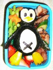 今日は運動会と並んで一年で一番疲れる幼稚園の行事、親子遠足。特に何か動くというほどのものではないのだけれど、毎年帰ってくるとぐったりするのよね~。やっぱり朝早くから作るお弁当が疲れの原因かな。この親子遠足。ツインズの三年間とたいぶーの2年間をあわせて計5年間。晴れた日はほとんどない。降水確率80%ぐらいかな。今日だってこの一週間全部晴れなのによりによって今日一日だけが雨なのよ。明日は晴れしかも結構風が強くて荒れた天気だったので、ママ友さんから「今日の遠足行く~?」なんてメールもまわってきた。行かずに済むものならはっきりいっていきたくないのだけど、たいぶーはその気になってるし、クラス写真も撮るので一応行っておかなくちゃ・・・・かな。こちらには広く使える屋内施設もあまりないので、いつも似たような場所でばかり遊ぶことになる。今日行った場所も2度目なのだけど、何にもなく屋内グラウンドで遊ぶといっても・・・という感じ。先生方が用意したちょっとしたゲームをするともう「少し早いけどお昼にしましょうか」ときた。少し早いけどってアンタ、まだ10時半なんですけど?仕方なくだだっぴろいグラウンドに敷物を敷いてお弁当に・・・・。お友達ママさんが皆凝ったお弁当を作ってくるに違いない、たいぶーに恥はかかせられんという訳でママも今回はがんばってみました。 ペンギン弁当。微妙にかわいくないのだけど、まぁ一応キャラ弁ということで。食後11時頃から帰るまでの13時半までの時間はすることもなくママ達はすごく時間を持てあますんだよね~。多少のお遊戯とかも入れつつだけど、ママ達はひたすらボーっとくっちゃべるだけ。「それにしてもうちの幼稚園の親子遠足は毎年天気悪いんだよね~」という話題になった時私が「ツインズの幼稚園時代を通して悪天候だからやっぱ園長が雨男なんじゃないの?」なんて話していた。するとあとから話に加わったママさんも「絶対に園長先生が雨男だよね!」と話しかけてきた。皆そう思っているんだからきっとそうに違いない。ま、とりあえず子供たちはなんだかんだと走り回って楽しく遊んだようなのでいいか。たいぶーはお決まりのあうたんと一緒にご飯を食べ、 そのあとも とか、 とかいったシーンが多くみられたのだけれど、他のお友達ともそれなりに遊んでいました・・・・・って信じる?たいぶーのお相手はいつもあうたんという訳ではなく年少さんの時の仲良しCちゃんだったり、仲良しO君の妹(赤ちゃん)のHちゃんだったりする。Hちゃんとはほっぺにチューもしちゃいました。もちろん先生とも・・・・