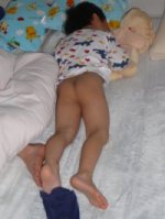 ええ、またこの季節がめぐってまいりました。つい数日前、夜中にふと目が覚めると隣で寝ていたパパが下半身パンツいっちょでねていました。またこれがはじまったか・・・・。パパをトントンとたたいて「どうして脱いでんの?」と聞いてみたけど、寝ぼけ眼で「わからん」という答えが返ってきただけだった。まぁ暖かくなってきたし放っておこうそして今日。朝の光で目が覚めると、反対の隣で寝ていたたいぶーが下半身丸出しで眠っているのが目に入った。これももう3度目、4度目?もちろん動じませんわ。サッとたいぶーの股間の辺りのシーツを触って確認してみたけど濡れてなかったのでとりあえずそのまま眺めていることにした。どうやって脱ぐのかなぁ~?相変わらずプリッとしてていい尻だどういう遺伝子なんだろう、これって?とりあえず撮っとくか。というわけで皆さん、いらないかもしれないけどご覧あれ~。 ビミョ~にモザイクかけてみました。卒業したはずのプーさん枕が見える?それはアナタの気のせいでしょう。ちなみに最近は滅多にオネショをしなくなったたいぶーなんだけど、今日脱ぎ捨ててあったパジャマの中にあったオムツは既にボットリと水分を含んでおりました。ちゃんとオネショをしてから脱ぐあたり、親孝行な子じゃ。ところで昨日、幼稚園のママ友さんから、この近所を走る路面電車にスマイル○ート○ムという企画で子供たちの写真が貼られていてたいちゃんも載ってるよー!と教えてもらったので明日の休日にでも家族で見に行こうと思っていた。今日、フレッシュテニスをしに行ったとき、すぐそばを通った電車がたまたまそのたいぶーの写真が貼られている電車だったので激写! 電車に乗りもせずに電車にたかって子供の写真を探す母たち。 このまぶしい笑顔のたいぶーは幼稚園から帰宅後、ぐずり気味。どうしたの?と聞くと「こころがいたいの。」と苦しそうに答えた。こころ?「こころってどこ?」と聞くと「ここ」と喉を指差して苦しそうにしている。ほぉ~、アンタの心はそんな口に近い場所にあるんや。本当に喉が痛いのか、本当に心が痛む精神的な病か・・・・どっちなのだろう?それにしても今日は忙しい日だった。フレッシュテニスと家庭訪問とユー兄の眼科と・・・それが全部終わった夕方に小学校からの電話。これがちょっとした衝撃の電話だった。この話はまた明日・・・・。