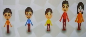 最近、ママ友から家族のMiiを見せてもらったりしてそれを似てる~だの似てな~いだのと話して笑ってたの。そこで我家も作ってみました。Wiiを買った時点で作ってはいたんだけど、子供たちも成長して兄ちゃんはメガネを掛けるようになったし、ちびぶーだったたいぶーもちょっとだけ身長が伸びて体も引き締まってきたし。昨日の晩、子供に聞きつつ目やら口やらを全部一新。出来上がったのがコチラ。 どう?似てる?・・・・・って知ってる人しか答えられないね。画像が小さいのでちょっとわかりにくいかな。ツインズをアップ。 双子なんだけどビミョ~に違うんだな。左がユー兄、右がショー兄。目つきとか・・・。ユー兄は何度注意しても開いてしまうポッカ~ンと開いた口が特徴。あとほくろの位置がユー兄はホッペの中ほど。ショー兄は目元近く(メガネで隠れちゃってる)。本当はちゃんと同じ目をしてるんだけど、なんとなくイメージ的にはちょっと違うので目の形も変えてみたの。昔っからショー兄がシャープな印象でユー兄がノペっとした印象なんだよね~。でも特徴を捉えるのって難しい~。似てるようであんまり似てないような・・・。もっと似せるにはどうしたらいいんだろうね?誰か作りに来て・・・。