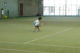 今日は三兄弟のテニスの試合がありました。夏休みからずっとパパが週末もずっと出勤してる為、スクール以外は何も練習をしてない状態だというのにテニスの試合を申し込むのが間違ってるんだけど・・・・。たいぶーは初心者・1~2年生の部。やる前から「勝ったら何か買ってくれるん?」「優勝したらどうなるん?」と聞いてくるのだけど、たいしてやりこんでもいない上に2年生が圧倒的に有利なこの部で1年生のたいぶーが勝ちあがれるわけもないのにね~。ちっちゃいクセに構えだけはいっぱしのフェデラー並。 残念ながら2回戦で負けてしまいました。たいぶーはインドアコートでやってたんだけど、外の広いアウトドアコートでは小・中学生の部が開催されていた。そっちにまぎれるといつの間にかたいぶーは中学生のお姉ちゃん達に囲まれている。知り合いか?と思ったが、全く知らない人たちで「かわいい、かわいい」と声を掛けられていたらしい。小っちゃいしマスコットキャラみたいなもんか。さて、まずユー兄の試合。残念なことにちょっとドロー運がなかったのか結構やり込んでる相手と当たってしまい、一回戦敗退~。次にショー兄。これは勝てる!という相手に緊張で固くなってかアウトばかりを繰り返し負けそうになったもののなんとか後半挽回して2回戦へ。 2回戦の相手はショー兄より上手。勝てないことはなかったとは思うのだけど、残念ながら逆転され敗退~。皆上手です。ツインズの出たのが小学4年生以下の部。例のツインズと同級生の上手な女の子Tさんは・・・とドローを見ても名前がない。あら?出てないのか?なんて思っていたら、なんとワンランク上の中学2年生以下の部の方に出場。しかもそこで第3シードを取ってらっしゃる強者であった。小学4年生以下の部になんか出たらダレも相手にならなくてつまらないんだろうな。もう、ツインズなんかとレベルが違います、はい。試合も少なくともママが知ってる限り、3回戦までは全て6-0で連勝してたし。いいな~。自分の子がこんな見ごたえのある試合をしてくれるなんて羨ましい。一緒にテニスしたいな~。ユー兄が今回負けてくやしかったらしく、週2回スクールに通いたいと言い出した。そういう問題だろうか???見込みがあったらそれもアリだけど・・・テニスのセンスがなさそうなんだもんな~。お金もかかるし残念ながら却下とさせていただきます。