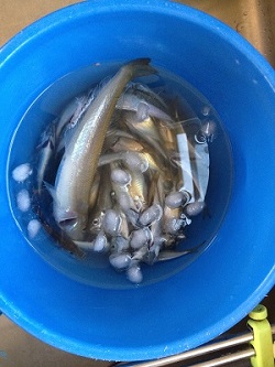 毎回数匹しか釣れないもんだからここんとこずっとご無沙汰の釣り。昨日久々にたいぶーが釣りがしたいと言い出したので一年ぶりに行くことになった。ちょっと歩けば日本海にぶつかる我が家。もっと気軽に釣りをしてもいいんだけどね。初心者でいつもあまり釣れないもんだからなかなか続かないのだ。ママは釣りにはまったく興味はないし、お仕事がお休みなので絶対にお寝坊したいということで、起こしてくれるなと参加せず。子供とパパの4人で行ってもらった。ママが朝7時半に起きるともう誰もおらず・・。パパから「すげー小あじが釣れる」と喜びのラインが入っていた。釣るだけ釣ってきてあとはポイ投げされるのがとってもいや。魚さばけないわけじゃないけど、臭いし面倒だからいやなの。そんなわけで行く前から「釣るのは勝手やけど絶対にリリースしてや」と念を押しておいたのだ。それなのに、なんと9時に帰宅するなり「持って帰ってきた」と言う。ぬぁに!?ママのお怒りを想定していたのかパパが「俺が処理するから」だって。 ほとんど豆あじ。一匹大きいのはキスかな。これ以外にも小さなカワハギやフグも釣れたんだけどそれはリリース。 いっぱい釣れてたいぶーは大満足だったようだ。 釣ったものよりママとしてはなんでショー兄の服がそんなにチンチクリンなのかの方が気になる。160サイズがもう着れなくなってしまった・・・。 こちらはユー兄。魚連なって釣れてます。持って帰ってきた魚はパパがネットで調べながら捌いて、長時間かけて南蛮漬けにしてくれた。キスもお刺身に・・・。帰宅してからの魚の処理に相当疲れたようだ。そうであろう今日の夕食が楽しみだ