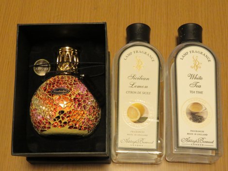 昨日は私の誕生日でした。朝一番で「おめでとう!」と言ってくれたのはたいぶー。こういうことをきっちり抑えるところは昔から変わりません。それを聞いて兄ちゃんズが「あ、そっか、おめでとう」「おめでとうございます~」と続いた。どーでもええ感丸出しやな。昨日はパパとランチデートちょっと隠れ家的な感じのレストランでした。途中停電したりとハプニングがあったけど、なかなか美味しかったです。こちらはパパからのプレゼント。 ありがとぉこれはうちの店イチオシのアシュレイ&バーウッドのフレグランスランプこれ、欲しかったやつなんだぁ。基本、お金を稼いでる店でお金を使うことはしないのが私なんだけど・・。最初見た時は「値段たけーな」ぐらいの印象しかなくて特に欲しくもなんともなかったの。だってSサイズで5400円。Mサイズで6900円だったかな。入れ物だけでそのお値段。さらに中に入れるフレグランスオイルも必要なんだけどこれが一つ3000円。ケチな私が欲しいと思うわけがない。でも同じパート仲間2人が以前これを購入したんだけど、芳香力もいいけど消臭力がホントにすごいんだよ!と口をそろえて言うの。あたしは家の匂いって結構気になる方で、特にキムチ鍋とかカレーとか焼肉とかの食後の匂いが丸一日続くのっていやでさ。ドラッグストアで消臭スプレーを買っておいて食後にまき散らして匂いを消す・・・というのが常だったの。でも市販の消臭スプレーってその瞬間は消えるけど、少しあとに部屋に入ってきたらやっぱり臭いが残ってるってこと多いのよね。そんでまたスプレーする・・・。しかもスプレーしたらミストが頭の上に落ちてくるしさ。そんなスプレーを何缶も買うくらいなら長い目で見るとこっちでもそんなに高くないよ!しかも消臭力と芳香力はこっちの方が上だからって勧められたの。もう一つ言うと、燃焼時間を追加すればダニの除去やウィルス除去にも優れてるの。パート同士、店のものを勧めるなんて絶対しないんだけど、これはお墨付きらしく二人ともかなりお気に入り。それに触発され、他の一人も買って虜になったの。そんなにすごいとなるとやっぱり私も欲しくなってくるのよね~。そんなわけで今回誕生日プレゼントにこれをもらうことにしたのだ。ちなみにオイルは2つも買ってもらいました。というのも、オイルはブレンド出来るの。みんなのお勧めが「ホワイトティ」と「シシリアンレモン」というオイルのブレンドなんだけど、レモンティーみたいな香りになるの。値段を言わずに匂いだけ他の香りと一緒にパパにかがせると即答でこのブレンドの香りがいいと言うくらい、店でも大人気の匂いなの。この香りに魅了されて買ってく人がいるくらい。オイル2本というのは初期投資としてもちょっと厳しいけどね。でもどうせならお気に入りの匂いを楽しみたいもんね。冬は鍋の臭い消し。夏は兄ちゃんの足の臭い消しに活躍しそうだ。ユー兄からは箱詰めのチョコのお菓子、ショー兄からは箱詰めの和菓子をもらいました。おそらくヨーカドーのお歳暮コーナーで買ってきたんだな。たいぶーはママがお財布を預かっていて、返してくれと言われてたのにママが返すのを忘れていたため、プレゼントを買うことが出来ず・・・なしでした。夜はパパがふるさと納税を利用して手に入れた「ふぐ鍋」~!ふるさと納税の利用の仕方はイマイチよくわかんないんだけど、パパが色々調べて手に入れてくれたのだ。どれもとっても美味しかったです♪皆ありがとぉ