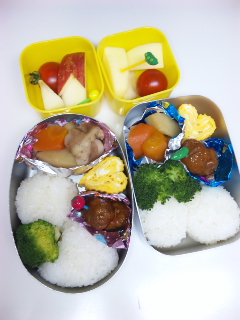 朝はバタバタするから、簡単に卵を焼いて、詰めるだけに。