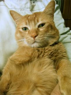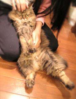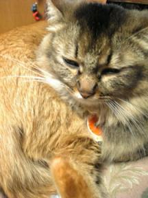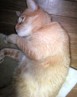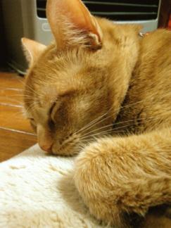 ファンヒーターの前に座布団を置いています茶様がねんねするんですちょうど台所と食卓の間よく通る所だけど座布団があれば踏ん付けることないしねなのに「ンギャ!」「あ、ごめん」ということがよくありますだってさはみ出してるんだもん台所の電気消していると暗いし…とにかく気をつけてにゃ!音も無く近づいて来てヘンな格好で寝てるんだもん…(>