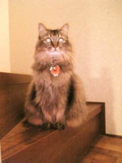 階段にぴこ様がいました思わず写真を撮ったら…目がこわ~い(^^;)これはフラッシュ使ったからだけど、暗闇で光ってたりすると一瞬ビクッとします ↓いつもありがとうございます♪一日一回ぽちっとよろぴこ茶↓&にエントリーしています♪ ♪ ♪ゴールデンキャット (Luccica/ブローチ)