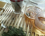 今日はHanoenさんが主催しているハーブティー講座へ行って来ました。はじめに実際にリーフを見ながらハーブの効能の説明がありました。今まではただ「おいし~」と飲んでいただけでしたが、ハーブティーにもこんなにたくさんの良い所があるのだなぁと、とても興味深かったです。そのあと、数十種類の茶葉から自分の好きな茶葉5種類を選んでブレンドして飲みました。これが結構楽しかったです。今まで同じものを選んだ人は誰ひとりいないそう。十人十色それぞれオリジナルのブレンドティーが出来上がるそうです。ちなみに私が選んだ5種類は ジンジャー ベルベーヌ ラズベリーリーフ ローズマリー ローズヒップの5種類です。なかなか美味しかったです。効能は果たしてなにかしら~(汗)今までハーブティーって芳香剤っぽい香りがするイメージで敬遠しがちでしたが、去年ひろこりんさんのお家でご馳走になったのがとても美味しくて飲むようになりました。よい茶葉はとても美味しいと思います。Hanoenさんでも購入できるようなのでご興味のある方は是非。 ↑私がブレンドしたもの。 ラッピングして下さり、お持ち帰りできました