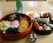 今日はお茶の初釜でした。何でもいいからなるべく着物を着ていらして、と先生から言われていたので4時起き(汗)してがんばりました。1人で着るのは心配だったので前日実家に泊まりましたが母に頼らず何とか1人で着れました。前は3時間近くかかっていましかが、今回は2時間で着れました(かかかりすぎ?)初釜はちょっとしたお料理が出ました。盛り付けや味付け、いろいろと勉強になりました。着慣れない着物で出掛けたので帰ったらどっと疲れが出たけれど、よい一日になりました 帰って来てから撮ったので、裾が開いちゃってるわ(汗)