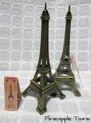 - ダイソー モニュメントタワー - ちょっと買いたいものがあってダイソーへ。目的の物は無かったのだけど、最後に店内を一回りして、帰ろうとした時にこれを見つけました。いつから売ってあったのでしょう?普段置物系とかあまり見てないので、気が付かずに通り過ぎてたかも。手に持ってみたところ、ちょっと大きめかな?なんて考え迷いつつ2個買ってみました。家にあるエッフェル塔と比べてみました。全部、セリアとか他の100円で売ってる物ばかりですが・・・。上の写真のNO.01とNO.02をアップで見るとこんな感じです。