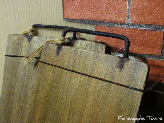 麻紐は下げ紐が切れたという設定で、カッターで少しずつそぎ切りに。