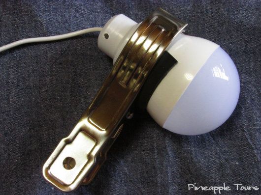 本来は吊り下げて使うようになってますが、どうせならばもう少し思った方向を向いてくれないかと、簡易的なクリップライトにしてみました。