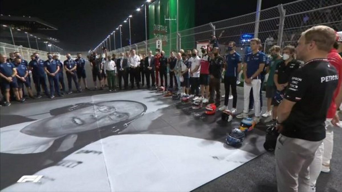 2021年第21戦サウジアラビアGP、決勝前グリッドでの追悼セレモニー。