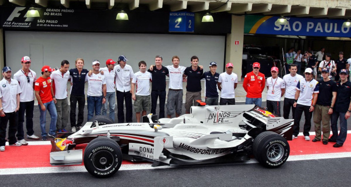 2008年のブラジルGPはこの年の最終戦で、レース終盤の雨によってフェラーリ駆るフェリペ・マッサが40秒間だけワールドチャンピオンだったドラマチックな展開として記憶されているレースだ。そしてすでに引退を表明していたデビクルは全チームの承諾を得てスペシャルカラーで臨んだ。