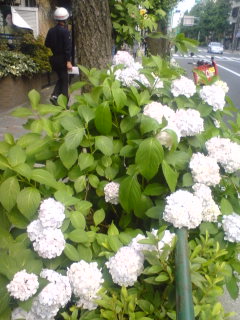 日本橋三越、地下鉄からの入口。 夏用の、暖簾もありましたが、この紫陽花はお見事。 用事もあり買い物も致しました。 一生お付き合いするところへの贈り物であれば一升瓶がいいです。と、老舗の女将のようなかたに教わりました。力強いお言葉、素直になろうと思いました。 ● 春夏冬 二升五合 あきない ますます はんじょう こんなことばを思い出しました。 本当にいいお天気です。何もいうことありません。