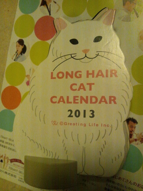 東急ハンズで、カレンダーコーナーみつけて、ながめていたら、ネコやらイヌやらウサギやら・・・・そんな一角があり、結構癒されました。1年間来年は癒されたいと思い、LongHairのネコのカレンダーを衝動買いしました。会社のデスク用です。1月の予定がわかるもの・・・とぼんやりおもっていたところ、本日から活用中です。きのう、11月のカレンダーの曜日をみて、12月の日程調整をして、日付間違えておこられたので、気を付けたいところです。 BGM: モーツァルト トルコ行進曲 K.331 第3楽章 (pf:三輪郁)http://www.youtube.com/watch?v=wYVb3fNEIOc