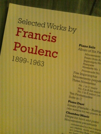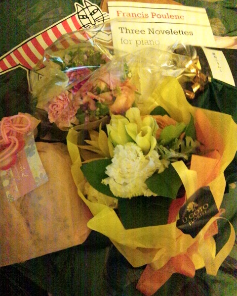ピアノ発表会無事おわりました。2000年からずっと続けて出ていまして、14回目になりますが、何度でても、いろいろハプニングもありますが、終わってみまして、半年間いろいろ試行錯誤してきたことも、それなりに表現できたこともあり、弾き終わってよかったと思っています。プーランクに興味を持ってくださったこともあったのかもしれませんが、多数ご来場いただきましてありがとうございました。お花、お菓子、メッセージその他、多数いただき、本当にうれしく思っております。お気遣い感謝しております。●午後4時くらいに、江戸川橋のピアノパッサージュで弾いた後で、ダブルヘッダーのようになりました。サロンコンサートでは、思うように弾けない箇所、まちがったことない箇所がおかしくなったりしたのですが、結果的に開き直る時間をつくれるようなことができて、よかったのかもしれません。ピアノの発表会は、ホール形式なので、楽屋もあるし、ひとりになる時間もあるし、他の人の演奏は聴いても聴かなくてもいいし、午後7時過ぎに弾くときに、それなりに修正できるところはないものか、自分自身考えてみました。とにかく3つのノヴェレッテの1曲目を丁寧に弾こう。それにそれに専念することにつきると思いました。リハーサルの時間は2分半ほどありましたが、全部1番で使いきって、自信持って音を出しにいけばいい。2番目と3番目の曲は、譜読みのあいまいな点は多少あるものの、流れにのせることに専念して、音楽を止めないように流れて、不思議な和声のあるところの聴かせどころの音が響くようにしよう。そんな感じとなりました。思ったよりは、いろいろありましたが、思ったよりは落ち着いて楽しんで演奏できたと思っています。プーランクのノヴェレッテは3曲とも個性が異なるのでまとめて弾くむずかしさを改めて感じました。ソナタ全楽章を弾くのとかプレリュドを抜粋で数曲弾くのとかとはまた違う印象ですが、その変わり身の早さ・・・というものが、面白く変化できればいいのでしょうか。弾けば弾くほどこの曲は好きになり、練習していても全然飽きないし、やることはたくさんあるし、選んでよかったとつくづく思いました。毎年3月のこのピアノ発表会は、いろいろな意味で、教えて頂けることが多いように思いますので、また来年弾く曲は、夏ごろ決めて、直前の2-3か月はそれなりに弾きこめるような感じで本番へ持っていきたいです。2009年以降作曲家の生誕年、没年とかで、選曲していましたが、これ以降はもっとフリーに考えてみようと思っています。今後ともよろしくお願いいたします。