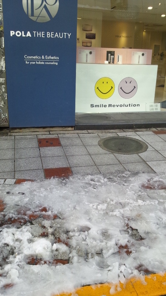 大雪のあとの1日、渋谷から歩いて松濤のタカギクラヴィアまで、ピアノを少し弾いたのと、レクチャーコンサートに伺いました。ピアノの発表会の1か月少し前であり、そんなに弾きこんでいるわけではないのですが、今の時点でどの程度船酔いするくらいの舟歌なのか、スタインウェいでどの程度弾けるのか、未知数だらけですが、無理してリャードフの舟歌を弾いてみたという感じです。音の感じがなんとなくわかったのと、むかしから聴いてくださる方に聴いてもらえたので、それはよかったです。ピアノの発表会のリハーサル会場はいつも同じ場所なのですが、そのときはもっとまともに弾けるようにという意識が高まりました。雪用の靴を出してはいたのですが、積雪20cmの常態で急に履いて出すと、ダメになるらしく、靴の底が歩けば歩くほど、割れて行き、本当にひどい状態になってしまいました。松濤の近くの東急百貨店本店で、靴の修理屋さんにも靴屋さんにも同じことを言われて、ご迷惑かけないように、靴はリニューアルすることになりました。雪用の靴は、上野から、「あけぼの」という夜行に乗って、シューベルトの冬の旅だとおもって秋田(田沢湖・角館)に行ったときのこと。雪用の靴を駅前のスーパーで買ったもの。その後札幌のkitaraや中島公園にも連れて行ったし、結構思い入れあったのですが、この日で最後にしました。靴を買い替えたあと、眺めたスマイルの看板はなんだか癒されました。●レクチャーコンサートは、小学校2年生の方がきれいなモーツァルトを弾いていて、こどもならではの天真爛漫な演奏は、大変刺激を受けました。そのあとのコンサートもきらきら★とかK.310とか弾いたこともあるし、いっぱい聴いたこともある演奏を楽しんで聴かせていただきました。楽譜が頭にあるものについては、いろいろなところに興味が行きました。 タカギクラヴィアの前にあった、雪だるま。なかなか見れない光景に見とれていました。●消灯・・・と書いたのは、家を出る前、突然自宅のブレーカーが全部落ちて、電気が止まってしまったこと。雪のせい・・・とおもっていたのですが、「●●区では、雪のために停電になった報告はありません。」と言われ、真っ青になったのですが、真っ暗な部屋に帰ってどうしようかと想いながら、近くの大手電機屋さんでいまどきの懐中電灯を買って帰宅しました。1日たって、電力会社に来てもらい、電気工事会社に来てもらい、漏電が原因と聞き、やっとパソコンが普通に使えるようになりました。夜更かし大好きな人間がなにもできないのは非常に昨日は大変でしたが、ほっと一息ついたのところでございます。壊れたり直したりばっかりの1日でしたが、きっと弾いた舟歌はそういう状態・・・・ですと、神のお告げがあったのでしょう。
