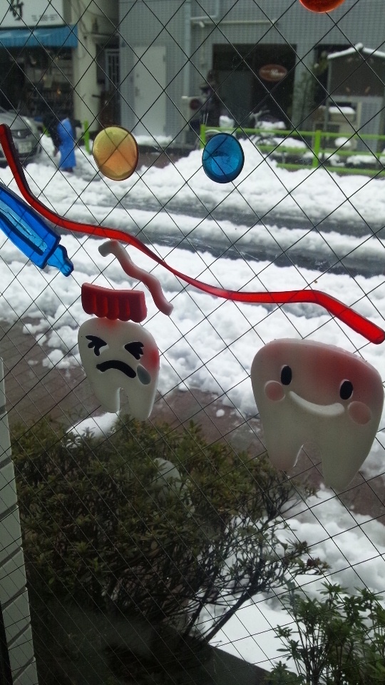 先週ほどでもないだろうとおもっていた雪は、思いのほか降り続け、雨に変わるといっていたものは変わらず、そんななか歯医者さんへ行く用事があったので出かけました。歯医者さんのガラス絵は、雪の中にほほえましく映って、ちょっと気分が晴れました。●午後から、中央線の高尾より向こう側へ行こうとしていたところ、宿泊予定のところから、電車動いていませんので、キャンセルでお願いします。キャンセル料かかりません・・・と丁重な連絡いただきました。口コミでこういうのは広がるのかもしれませんが、いろいろ気を配っていただきました。雪のなかの富士山見たかったのですが、またの機会に。BGM:ヴィヴァルディ 四季より「冬」http://www.youtube.com/watch?v=nGdFHJXciAQ