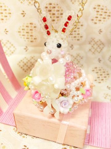 前回は天然石を持ったうさちゃんを作りました今度はまるで花嫁さんのように可愛らしい うさちゃんですピンクを基調に、パールをたくさんあしらった可愛いドレスで花束を抱えていますドレスにもお花がたくさん咲いています首飾りには薄いピンクのパールとロードクロサイトの天然石をつけましたロードクロサイトには“ばら色の人生”等の言葉があります(*^m^*) ちょっとゴージャスな感じのするうさちゃんエレガントなバッグのバッグチャームにも合いそうです(人´∀`*)。・:* これまではたち耳うさちゃん を紹介しましたが次はたれ耳うさちゃんを紹介しますね