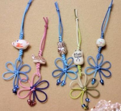 クリスマスカラーも消え。。。前回のブログを読まれた方からクリスマスツリーに関するお問い合わせ、ご注文を多数いただきホントにありがとうございました☆(u u*)))思いがけない数だったので、私自身ちゃんとクリスマスまでお届けできるか心配だったんですけど゜゜(´□`。)°゜。だけど必死に頑張って。。。みなさまのご期待に沿えたようです。ありがとうございます☆(u u*)))なかには。。。『プレゼント用にしたいんだ』という相談を受け、色の組み合わせから男性用、女性用といろいろ相談しながら結局。。。16個ご購入された方もいらっしゃってΣ(゚Д゚;!?でも。。。私の作ったものが人に喜ばれる、と言うのはホント嬉しい限りです(*'艸`*)これからも楽しく皆様に喜んでいただけるような作品を作って行きたいと思っております。△※▽※△※▽※△※▽※△※▽※△※▽※△※▽※△※▽※△※▽※△※▽※△※▽※さて☆彡今回の本題です☆彡ビーズから少し離れて。。。“紐結び” というもをしております。簡単にできるプレートもありますがやぱりコルク板と針を使って微妙なバランスを持って出来上がった結びはなかなか可愛いものだと思いませんか?(´▽`*)エヘ ☆梅結び☆ これらには、いろんなカタチの陶器が間に通してあります。 ☆陶器色々☆ ここには招き猫や かめさん、フクロウ、それから干支があります。もちろん 来年の干支であるいのししもあります☆そして。。。 ☆玉房結び☆この結びを完成させるためには。。。3日かかりました。゚(。ノωヽ。)゚。でもできたときの喜びはもう!! ☆ストラップ全体像☆ ちょっと暗くてすみません☆(u u*))) ☆玉房結びアップ☆ また、このストラップには “あわじ玉”という結びもついています。全体的にころころとした かわいいストラップになっています(*´艸`*) ☆あわじ玉 アップ☆ △※▽※△※▽※△※▽※△※▽※△※▽※△※▽※△※▽※△※▽※△※▽※△※▽※梅結びも 玉房結びも一つ 500円にて 作らせていただきます☆(u u*)))ご注文の際には・結びの種類・間に入れる飾り物 ・招き猫 ・かめ ・フクロウ ・来年の干支の亥 ・チャイニーズビーズ(トンボ玉みたいに可愛い玉です) ・ご希望の方は ご自身の干支をお知らせください。・糸の色 ・赤系(紫に近いかも?) ・青系 ・緑系・必要な数をお知らせください☆ブログベージ右欄下の辺りに『メール』「メッセージを送る」 とありますのでそこからメッセージを送ってくださると嬉しいです(´▽`*)送料はこちら負担ですのでご心配なく☆またいろんなご相談ありましたら 遠慮なくメッセージくださいね☆