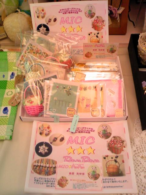 ずいぶんのご無沙汰になってしまいました^^;告知せずして終ってしまったのですが9/29~10/8にかけて高知県いの町において●うさの実●展を開催、たくさんの方々が来場くださり、ありがとうございました私はMIC☆penpenというブランド名で出品させていただきましたがお求め頂いた方多数いらっしゃったようで+゚。*(*´∀`人)*。゚+またこれからも頑張ります(´▽`*)そして来る11月3日、4日横浜みなとみらいにおいてうさぎフェスタ2007が開催されますMIC☆penpen は ●うさの実● として出展いたします出品予定作品ラインナップ花摘みうさちゃん 花摘みうさちゃん 横顔 スワロフスキービーズです。大きなお花を抱えています.+゚(*´艸`*)゚+. ころころしたカワイイうさちゃん。チェーンストラップ仕様なので、フォーマルなバッグなどにもいいかもジルコニアきらきらうさちゃん 花摘みうさちゃんより1mmちいさいスワロフスキーで作ったかわいいうさちゃんです。胸にジルコニアを抱いています大きさが2cmにもならないので、ネックレスチェーンを通すとかわいいペンダントトップにもなりますこちらもチェーンストラップ仕様です。うさちゃん陶器紐結び うさちゃんの陶器を通して結んだ紐結びです。梅結び菊結び+几帳結びどちらも控えめなかわいらしさを持っていますうさぎピンクッション うさぎピンクッション おしり こちらはスワロフスキーの待ち針5本とセットにする予定ですクラフトで編んだカワイイウサギさんのバスケットにクッションを入れてお顔とリボンをつけましたうしろにはカワイイしっぽがちょこんとついていますお裁縫のときにそばにあると自然と心が和むかも(*´m`*)・゜・。・゜゜・*:.。..。.:*・゜ うさフェスまであと10日!!ただいま鋭意製作中関東近隣の方!!横浜在住の方!! ぜひぜひお友達お誘い合せの上ご来場くださいませご来場の際には我が ●うさの実● そしてお友達ののんちゃまブース“Ans'J” よろしくお願いしますお隣同士ですのでブースのかわいい売り子さんたちをお目当てにいらっしゃるのもOKです