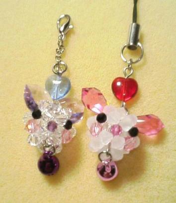 (。・ω・)ノ゛ コンチャ♪ 前回の日記で。。。お友達のflaura brilliantさんが私の作品を紹介してくださいました☆今日は、私の好きな動物ストラップを紹介します☆(u u*))) ☆ぞうさんストラップ淡いブルーのスワロフスキーでできたかわいい ぞうさん です(*^m^*) 耳とお鼻がなかなかチャーミング☆ ☆3連ストラップ私の愛用品です☆カエル、ひよこ、パンダをつなげてしまいました(〃´・ω・`)ゞえへへっ♪どれも基本的がまん丸なので とてもキュートになります☆パンダのお目目には ファイアポリッシュを使っているので楕円形がさりげなくたれ目ちゃんを作ってくれます♪ ☆ネコちゃん ウサギちゃん左がネコちゃん右がウサギちゃん☆ネコちゃんの耳には ハート型のスワロフスキーうさぎちゃんの耳には涙型にカットされたスワロフスキーを使っています。うさぎちゃんだけ、お顔をクリスタルではなくて ホワイトオパールを使いました。ネコちゃんもウサギちゃんも耳の色を変えられます(*^m^*) 耳とお鼻の色を同色しています☆どれも小さなかわいいストラップなのでささやかに贈り物をするときに よく作ります。子供が入院したときなんかに、先生や看護士さんへのお礼にたくさん作りました☆