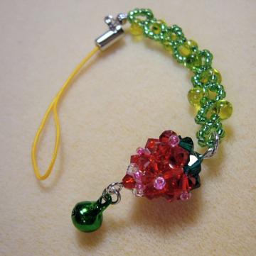 いちごです☆ 大きさは。。。1.5×1.0くらい。小さいので なんにでもできます(*^m^*) とりあえず。。。使いやすくストラップ とバッグチャームにしてみました☆ ☆ストラップ☆ いちごと、葉っぱ(茎?) に見立てた緑のチェーン。☆いちご部分の拡大☆ 先っちょに 鈴をつけてみました。 ☆いちごのバッグチャーム☆ バッグの持ち手の部分に チェーンでつけるタイプにしてみました。イチゴが赤色で、チェーンがシルバーだと少し地味になってしまうので^^;ゴールドです☆ こんなカンジ(*^m^*) 連結部分は カニカンと丸カンでつなげてあるので長さ調整自由自在です☆☆いちごの拡大☆ 2種類の色でいちごを作ってあります。バッグチャームでなくても同じようにゴールドのチェーンを使ってストラップにすることもできます゚ヽ(*´∀`)ノ♪いちごが小さいから。。。ラリエット や ペンダントトップ、イヤリングにも使えそう。