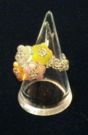 キャッツアイで 4色の フラワーリングを作りました☆ 出来上がりはこんな感じ☆ ☆手順☆ 1個1個 花を作っていきます☆ まず1個☆ 2つめ☆ 3つめ☆ 4つめ☆4つの花が完成したところでリング部分を特小ビーズで編んでいくと 完成です(*'艸`*) お花の色は 好きな色に変えられます☆例えば ブルー系 ピンク系 マルチカラー 大人っぽく。。。 これが 私のいちばんのお気に入り☆ ↓ 色を変えるとこんな感じ。 ↓ さらに 特小ビーズの色を変えると またイメージが変わります。これは ゴールドを使っているので ちょっとゴージャス☆ 。。。写真があまりキレイじゃなくて ごめんなさい(*- -)(*_ _)ペコリ
