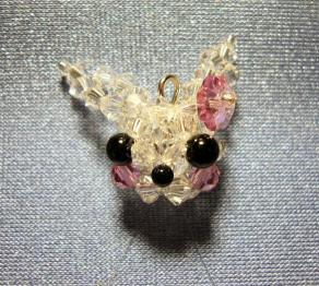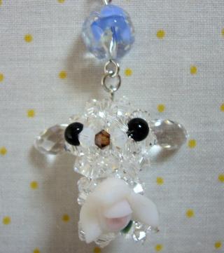いつもスワロフスキーで作品を作るときは4mmで作ることが多いんですが今回はちょっと小さめの3mmで作ってみました。レシピはそんなに難しくはないんです。。。 ☆まずは かわいいお顔☆ お耳にお花をつけています(*'艸`*)お耳がね~。。。小さいのと細いのとで ちょっと気が狂いそうになりました(^▽^;) で ☆出来上がりはこんなカンジ☆ 私はチェーンをつけてチャームにしたんですけどちょこんと立ってくれるので、ちょっとした飾りにも可愛いかもしれない(´▽`*) ☆うしろすがた。。。ピンクのしっぽがキュートです('-'*)♪♪☆ 。。。でね。大きさは。。。 これ見たら分かるかなぁ~?????これで等身大。。。くらいです^^;左にあるのは私がいつもつけているリングです☆それとほとんど大きさ変わりません(^▽^;)足から耳の先っちょまでで2.5cm!!作っているときは 目と頭がおかしくなりそうだったけど(ーー;出来上がるととても可愛くて(*'艸`*)胸に抱いているピンクのジルコニアがちょっとしたアクセントです。。。。なんだか 幸せ運んできてくれそう゚ヽ(*´∀`)ノ♪♪♪