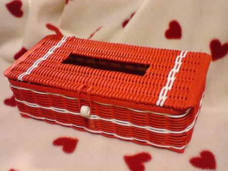 この場でいろいろ作品を紹介して いろんな方に気にって頂けて『こんなのが欲しいなぁ』 なんて相談されると嬉しくて一生懸命考えて作ってしまいます(*'艸`*)以前、ここでも紹介させて頂いたペーパークラフトのティッシュボックスと同じくペーパークラフトのお裁縫ボックスそれぞれお好みの色で 『作ってね』と言われ、気合入れて一生懸命作らせて頂きました △※▽※△※▽※△※▽※△※▽※△※▽※△※▽※△※▽※△※▽※△まずは。。。 赤のティッシュボックス ビビッドな赤に白の線がとてもきれいです(*^m^*) ムフッ真っ赤って。。。どんな風になるのかな? 。。。って私もちょっとわかんなかったんだけど できあがってみると。。。 すっごいキレイ・:*:・(*´ー`*人)。・:*:・ ティッシュをいれるとこんなカンジ △※▽※△※▽※△※▽※△※▽※△※▽※△※▽※△※▽※△※▽※△そしてもうひとつ。 知り合って1年になろうとしている大切なお友達 flaura brilliantちゃん からの要望で作りました ピンクのお裁縫ボックス 洋裁をされているということなので 少しばかり深さを作りました☆ 中はこんなカンジ。。。けっこう思ったよりも入ると思います ボックスの周りには、 赤色のかわいいリボンを巻きましたティッシュボックスもお裁縫ボックスも 以前薄いグリーンでの作品を紹介しましたが 赤やピンクもなかなか可愛いでしょ*:.。;..。.(´∀`人)キャ どちらも私のダーィヽ(*´∀`*)ノ スキッ★ な色なのでせっせと作ってたら 『あんた、またそんなん作って、あの部屋のどこに置くの?』 なんて 家族に言われてしまいました゜。(*^▽^*)ゞイヤー 乾燥もそろそろ十分だと思うので 近々送らせていただきますね ゚ヽ(*´∀`)ノ紙とは思えないようなしっかりしたものになってると思います。 お裁縫ボックスは、大きなハサミなど多少大きめのものでも大丈夫だと思いますよ(*'艸`*) 一生懸命ココロこめて作りました(u u*))) 到着を楽しみに待っててくださいね ゜+。:.゜ヽ(*´∀`)ノ゜.:。+ ゜