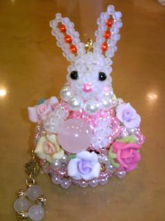 。。。暗い話を書くために開設したのではない!ということで前日の日記は削除しました☆(u u*))) んで。。。今日は熱も下がったし ヾ(--;)ぉぃぉぃ一日ビーズして遊んでましたよぅ☆ これは うさぎちゃんの頭です( ̄m ̄* )ムフッ♪これだけでも かわいいストラップができそうです(*'-'*)そして できあがりが こんな風にできあがりました゚ヽ(*´∀`)ノ♪ これはとあるお友達さんへ送ります☆耳を長~~くして待っててね♪ 。。。。。こころあたりあったら 挙手を(o ̄∀ ̄)ノ”ぁぃ