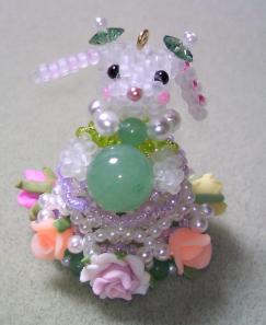 ずいぶんご無沙汰してしまいましたペコm(_ _;m)三(m;_ _)mペコ報告が遅れてしまいましたがブログタイトル および 管理人のHNを変更致しました。【MIC☆PenPen’s Room】および 管理人 槙原 海砂輝(Misaki Makihara)をよろしくお願い致します☆(u u*)))△*▽*△*▽*△*▽*△*▽*△*▽*△*▽*△*▽*△*▽*△*▽*△先だって予告しておりました【たれ耳うさちゃん】です親友の依頼で作成しました(´▽`*)エヘお友達へのプレゼントで、その方が飼ってらっしゃるうさぎちゃんがたれ耳ちゃん。たれ耳ちゃんのうさちゃんで、元気になれるような天然石を。実際、うさちゃんのお耳をたれさせると、ちょっと頭が寂しくなりまして。なので、耳にスワロのお花型ビーズをつけたら。。。可愛い~また、ドレスには可愛いお花をあしらい、可憐なうさちゃんになりましたドレスのすそに、同じグリーンアベンチュリンの小さな石をふんだんにあしらったのですけど、お花で少し隠れてしまいましたねお耳につけるお花、ドレスの色はうさちゃんが持つ石のお色に合わせることができます愛情たっぷりのローズクオーツや幸せな花嫁さんへのアクアマリンお好きなお色、石でお作りできますのでご所望の方はお気軽にご相談くださいませ☆(u u*)))