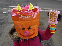 ハッピー節分ッ♪♪ 娘のぴょんが幼稚園から帰ってきました♪鬼になって!!! ただいま~♪♪ 先に家に着いたぴょん玄関を開けて ぴょこり 早くおいで~鬼に迎えられました~!! ぴょんが被っているのは、先週の土曜日参観日でパパとママとぴょん3人で一生懸命作ったおめん。今日はこれを被って幼稚園で豆まきをしてきたそうです。 そしてクラスでお休みした子が6人もいたみたい!!!徐々に押し寄せる、ウィルス(゜o゜) ぴょんも昨日から、咳をしはじめたし要注意です。 鬼も風邪もインフルエンザも悪い虫も、みんな豆まきしてやっつけなきゃ!!!