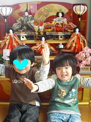 先週末、子供抜きで友達と東京にいってきました。楽しかったぁ~d(≧∀≦)b『いつも頑張ってるからたまにはいいんだよ』と言われ。まぁメインは結婚式なんですけど、終電まで遊ばせていただきました。家族のみんなに感謝です!!思えば、結婚してから友達と1日遊んだのは初めてでした。二日酔いじゃないですけど帰ってきてからの2日間は、眠くて眠くてぐーたらなダメ親でした。 そして今週は、やっと、やっと、雛人形をだしました!! 男の子も雛人形を飾るのは楽しいみたい♪じゃ~ん☆自慢するものじゃないけど・・・ お家が狭いから3段飾り。京都の雛人形でお人形の顔がやさしく微笑んでいるのを選らびました!お雛様のことは、詳しくはわからないけどぉ。気に入っています☆ そして~御内裏様との2ショット!!! 緊張気味のバンビ。 『おめめ~』と叫ぶまる 幼稚園からお姉さんが帰ってきて私も撮る~♪♪ 1時間ほどお雛様に見惚れるぴょんしばらくはお雛様のとりこになりそうヽ(*・ω・)人(・ω・*)ノてっ、お人形の顔がやさしいとかいって全然顔写ってる写真ないじゃない!!すみません。 春になったらバンビが幼稚園に入園しま~す☆幼稚園に持って行く袋をせっせと縫ったり、色々と入園準備中。。。。たまにの更新になりますが、みなさんこれからもよろしくお願いします。